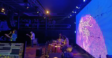 Diseño y operación de visuales en tiempo real para bandas y proyectos musicales, integrando pantallas LED, proyección y sistemas audiovisuales sincronizados.